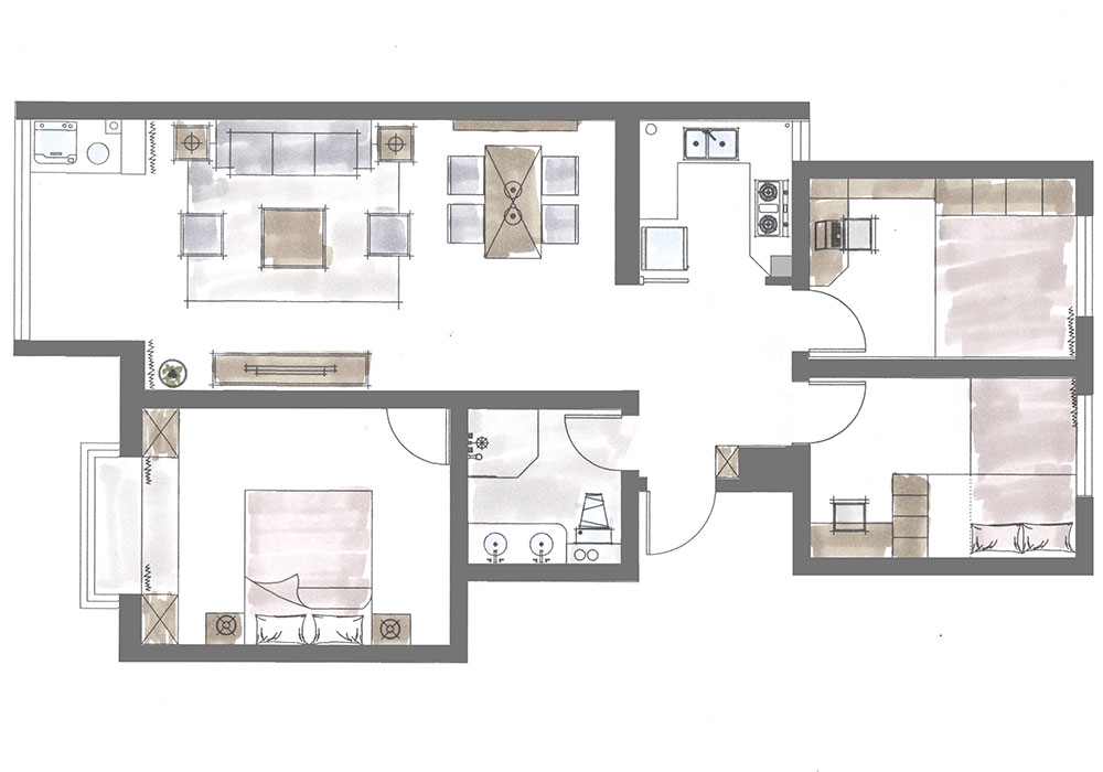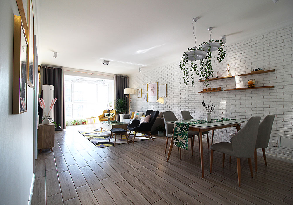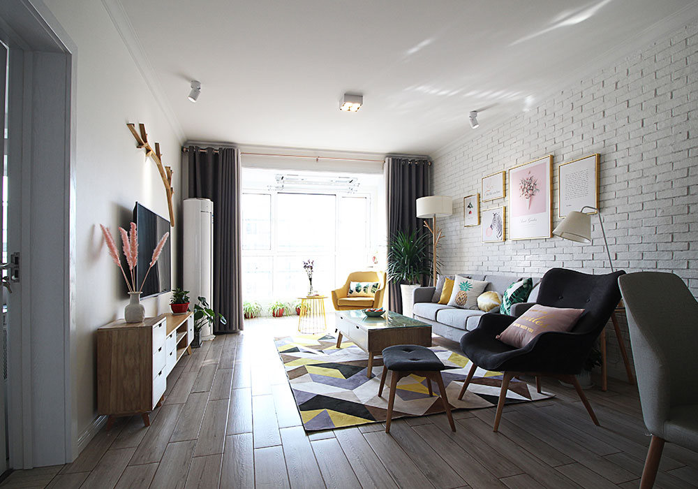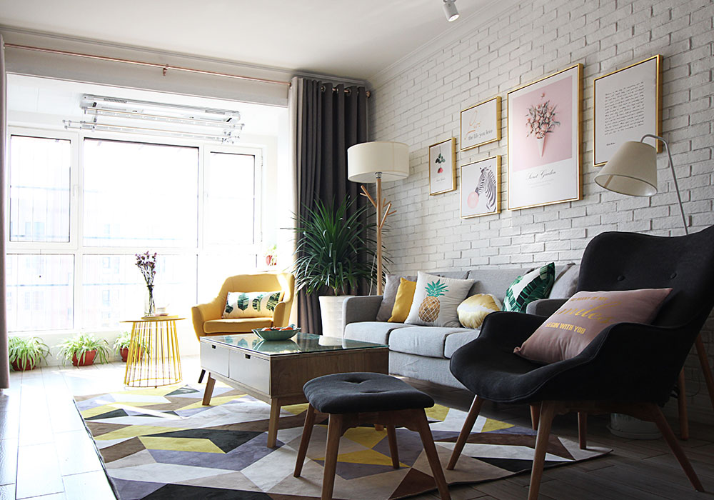 本案为一对八零后夫妇的三口之家,主人非常明确喜欢年轻时尚的北欧风格,并要求要合理计划资金投入避免超支。整体主色调定位为灰白色调,并加入糖果粉、柠檬黄、自然绿作为点缀色使空间色彩活泼时尚,有效的避免了呆板和乏味。在功能方面则尽量克服户型原有不足,将所需功能逐一实现。